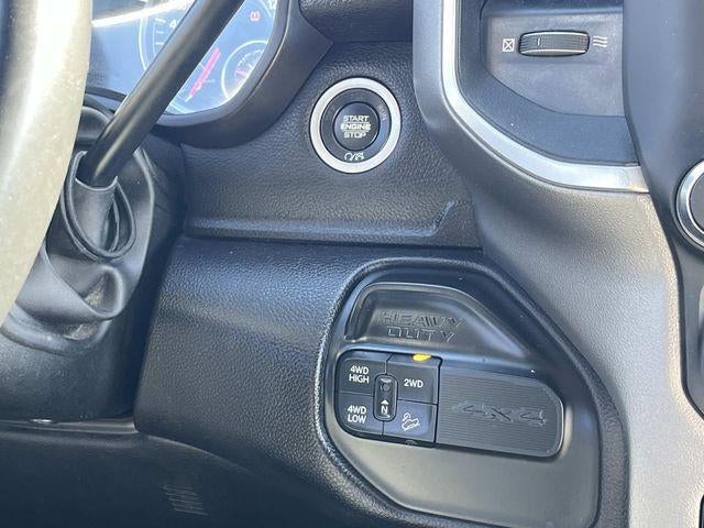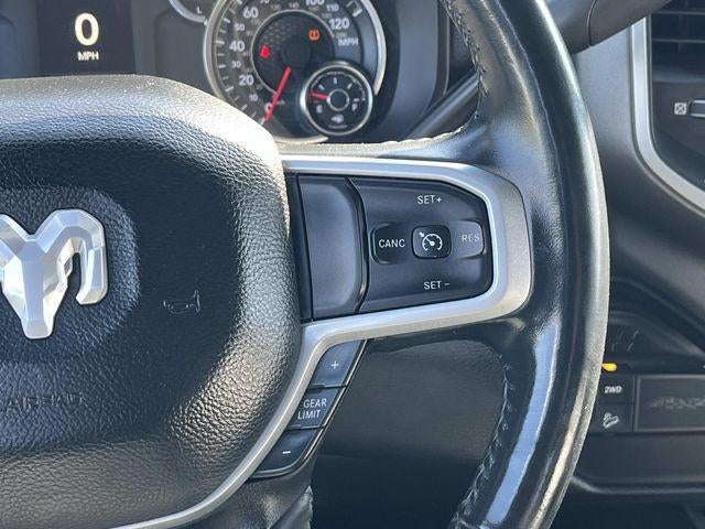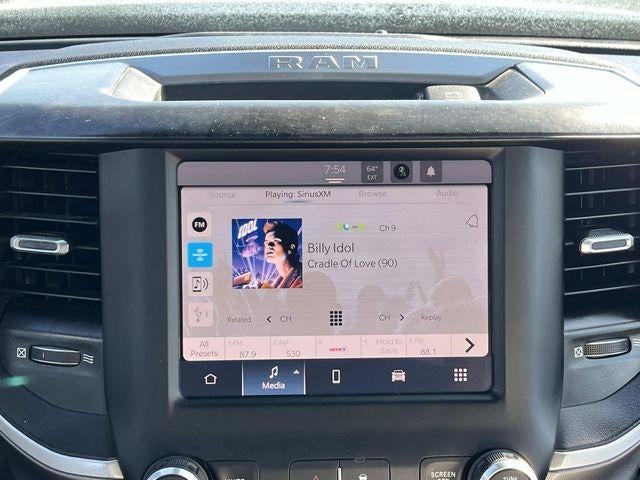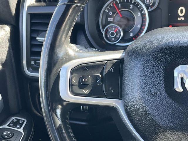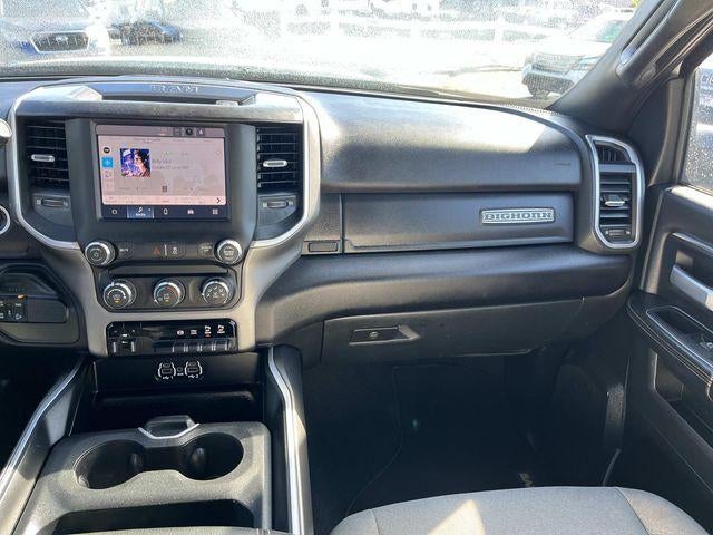 The cabin of this Big Horn model exudes premium craftsmanship, with a 40/20/40 split premium cloth bench seat, power-adjustable driver's seat, and a leather-wrapped steering wheel. Stay connected and entertained with the Uconnect 5 infotainment system featuring an 8.4-inch touchscreen, SiriusXM satellite radio, and a 4G LTE Wi-Fi hotspot.